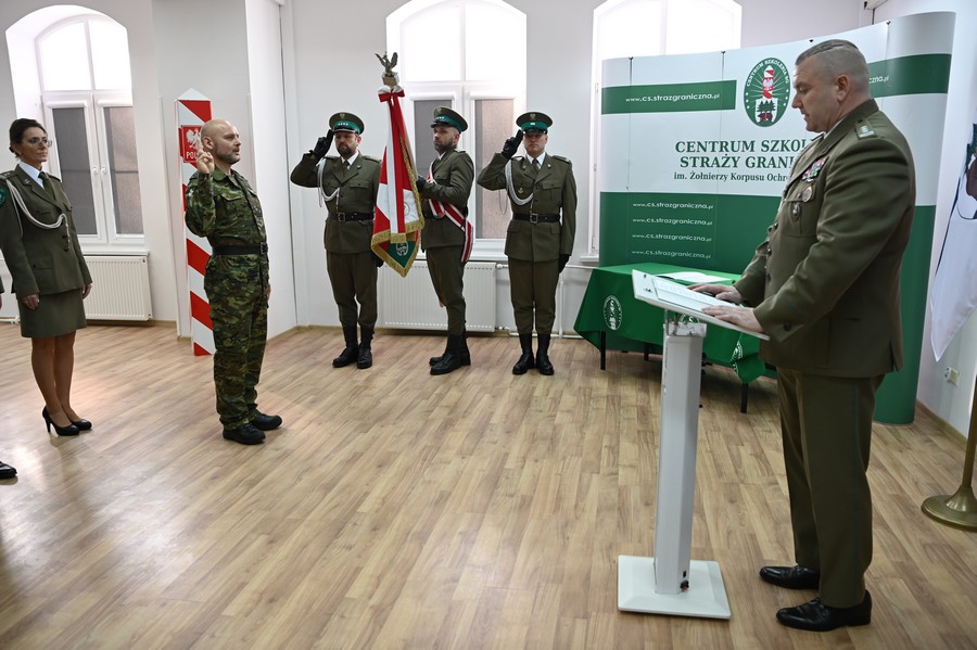 W asyście pocztu sztandarowego, mł. chor. SG Tomasz Kulis, złożył ślubowanie, które przyjął płk SG Adam Pacuk Komendant Centrum Szkolenia Straży Granicznej w Kętrzynie.