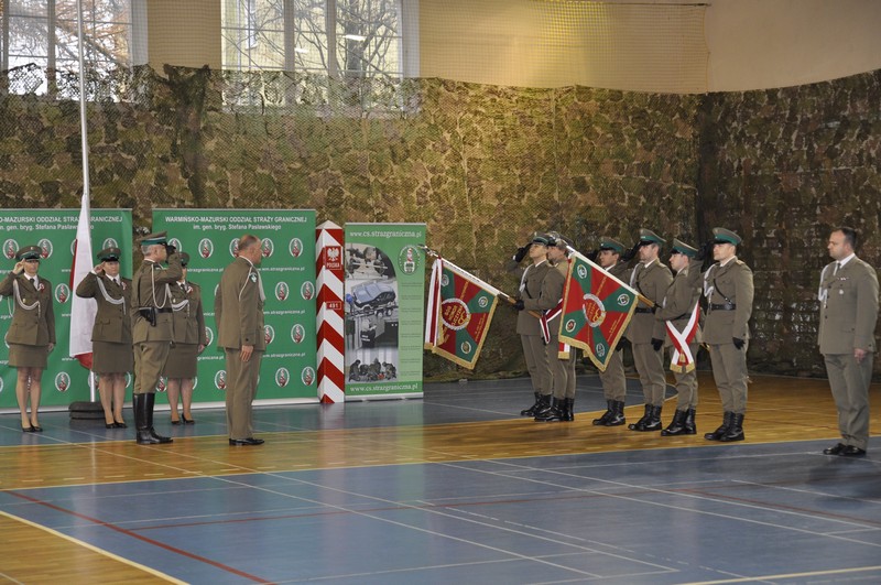 Na uroczystej zbiórce zebrało się kierownictwo, funkcjonariusze i pracownicy Warmińsko - Mazurskiego Oddziału Straży Granicznej i Centrum Szkolenia Straży Granicznej. Funkcjonariusze tych jednostek otrzymali mianowania na wyższe stopnie służbowe oraz wyróżnienia, m. in; medale, odznaki i nagrody finansowe.