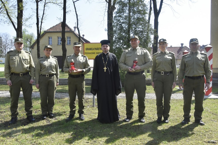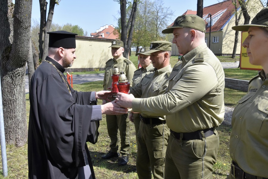 29 kwietnia br. Proboszcz Parafii Prawosławnej pw. Narodzenia Najświętszej Maryi Panny w Kętrzynie ppor. SG Paweł Siebiesiewicz uroczyście przekazał Święty Ogień z Bazyliki Zmartwychwstania w Jerozolimie płk. SG Adamowi Pacukowi Komendantowi Centrum Szkolenia SG oraz płk. SG Robertowi Inglot Komendantowi Warmińsko-Mazurskiego Oddziału SG.