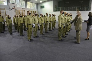 Podczas wystąpienia Komendant podziękował słuchaczom za zaangażowanie w czasie zajęć oraz pogratulował zdania egzaminów końcowych, podczas których wszyscy musieli wykazać się obszerną wiedzą specjalistyczną oraz szerokimi umiejętnościami praktycznymi. Wysokie wyniki jakie osiągnęli podczas egzaminu, to przede wszystkim efekt ich ciężkiej pracy oraz kadry dydaktycznej Centrum Szkolenia SG. Komendant życzył absolwentom sukcesów w służbie na stanowiskach służbowych w macierzystych jednostkach organizacyjnych Straży Granicznej, przypominając o ponadczasowych wartościach, które powinni utożsamiać funkcjonariusze w korpusie oficerskim.