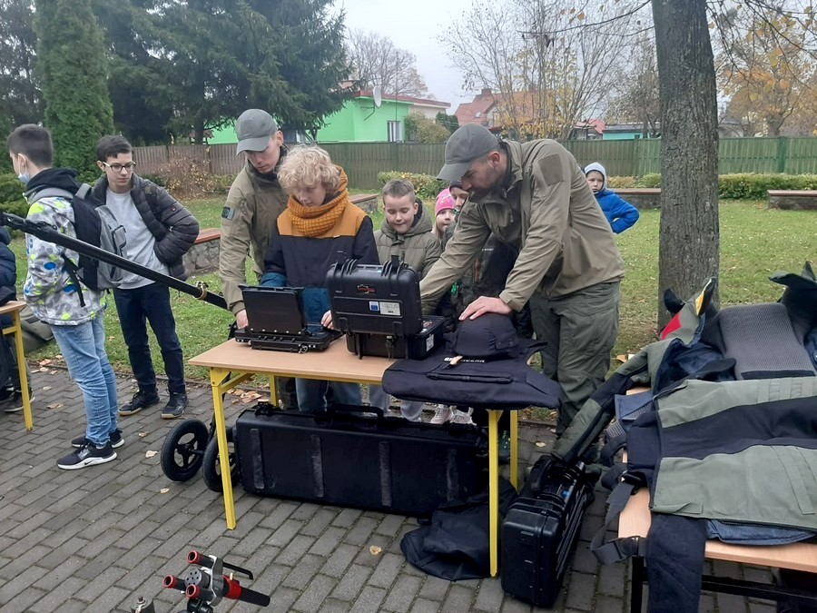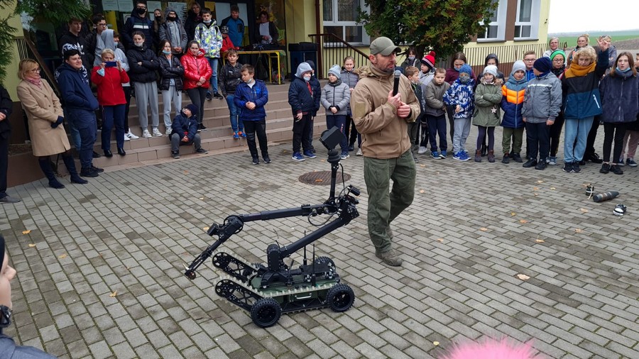W trakcie spotkania z dziećmi i kadrą dydaktyczną szkoły, funkcjonariusze omówili zasady postępowania osób przebywających na terenie placówki oświatowej lub w innym miejscu publicznym na wypadek zagrożenia terrorystycznego, czy wykrycia materiałów niebezpiecznych w postaci urządzeń wybuchowych pochodzenia wojskowego jak i improwizowanych. Dodatkowo funkcjonariusze opowiedzieli o swojej codziennej służbie, a także zademonstrowali sprzęt minersko-pirotechniczny wykorzystywany przez Straż Graniczną, taki jak robot pirotechniczny PIAP GRYF, ciężki kombinezon podchodzeniowy EOD 10, wyrzutnik pirotechniczny Richmond, a także sprzęt ochrony indywidualnej pojedynczego funkcjonariusza.