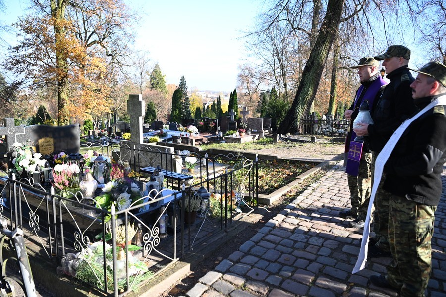 Przełom października i listopada sprzyja zadumie, nostalgii oraz przemyśleniom ze względu na dwa ważne dni. To Dzień Wszystkich Świętych i Dzień Zaduszny. Listopad to miesiąc szczególnej modlitwy za zmarłych kolegów funkcjonariuszy Straży Granicznej, wykładowców CSSG w Kętrzynie, których imiona wypisujemy na kartkach wspominkowych i polecamy modlitwie Kościoła. Ks. kpt. SG Paweł Grzeszek, ks. kpt. SG Dariusz Gliniewicz oraz ppłk SG Radosław Borowicz i sierż. SG Krzysztof Mazurowski odwiedzili cmentarze komunalne w Kętrzynie oddając się modlitwie.