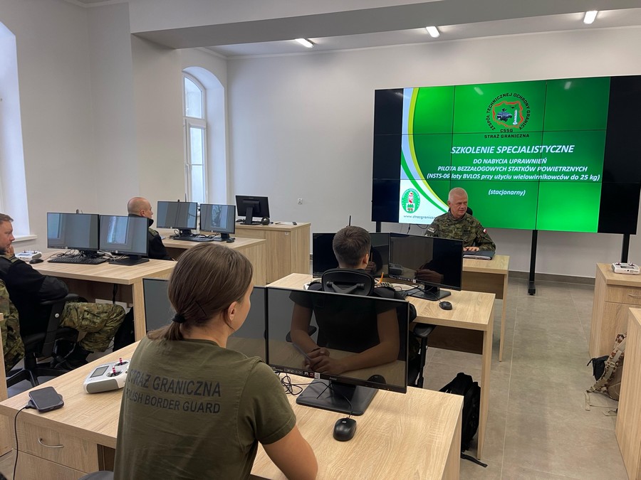 W szkoleniu realizowanym w dniach 17-27 listopada wzięli udział funkcjonariusze Straży Granicznej z Podlaskiego, Nadbużańskiego, Bieszczadzkiego i Warmińsko-Mazurskiego Oddziału. Uczestnicy szkolenia zdobywali wiedzę z zakresu prawa lotniczego oraz umiejętności niezbędne do prowadzenia obserwacji z powietrza, a więc mogących latać dronami o wadze do 25 kg, poza zasięgiem wzroku.