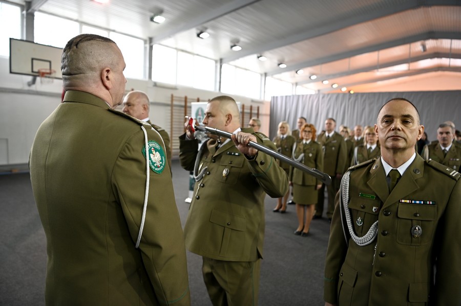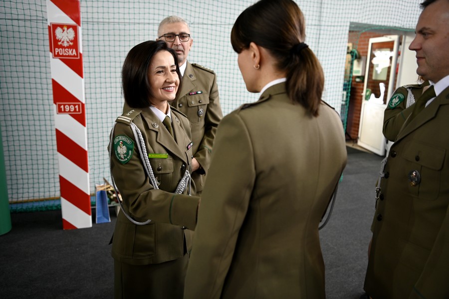 W imieniu Komendanta Głównego Straży Granicznej, Komendant CSSG płk SG Adam Pacuk wręczył funkcjonariuszom: Wioletcie Zglińskiej-Groch, Krzysztofowi Ślaskiemu oraz Jackowi Ciunelowi akty mianowania na stopień pułkownika Straży Granicznej oraz Wojciechowi Groch na stopień majora SG.