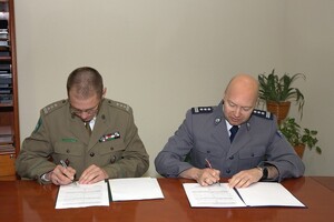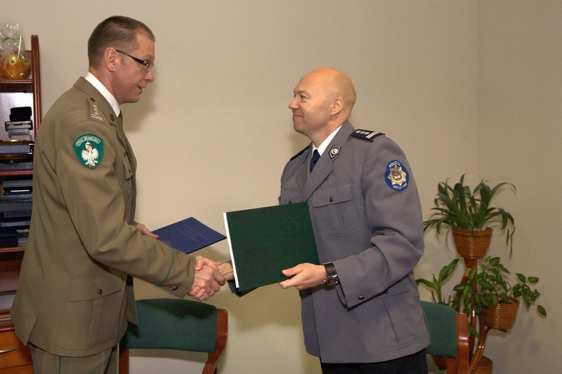 Podpisania porozumienia dokonali Komendant – Rektor Wyższej Szkoły Policji w Szczytnie Pan insp. dr Piotr Bogdalski oraz reprezentujący kętrzyńską szkołę Straży Granicznej Pan płk SG Andrzej Rytwiński.
