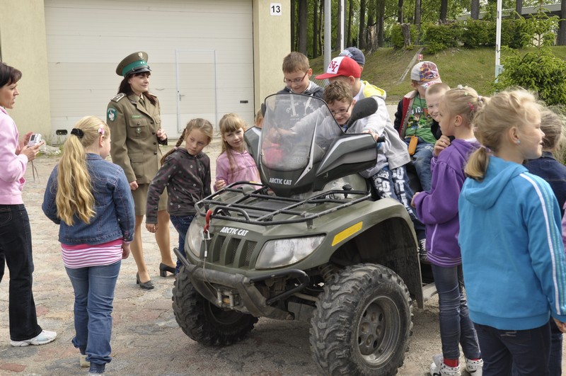W czasie pobytu w kętrzyńskiej szkole Straży Granicznej dzieci miały okazję zobaczyć sprzęt transportowy będący na wyposażeniu Warmińsko-Mazurskiego Oddziału Straży Granicznej.