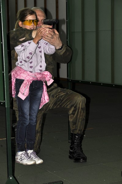 Na zakończenie swojego pobytu w kętrzyńskiej szkole Straży Granicznej, dzieci miały szansę postrzelać z broni pneumatycznej pod czujnym okiem instruktora.