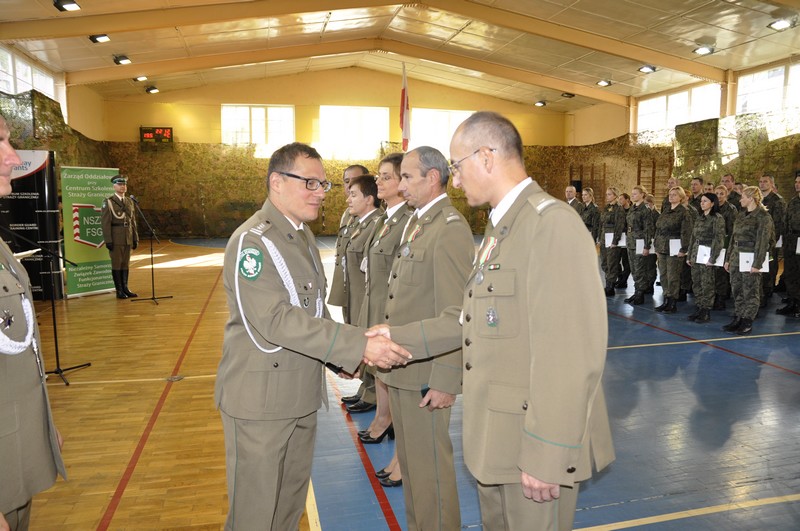 W obecności kadry ośrodka 62. słuchaczy odebrało z rąk Komendanta Centrum Szkolenia SG świadectwa ukończenia szkolenia w zakresie szkoły chorążych. Ponadto, Komendant uhonorował medalem pamiątkowym Centrum, zaprojektowanym z okazji jubileuszu 25-lecia formacji, 3 funkcjonariuszki, które uzyskały najwyższe lokaty: Panią sierż. szt. SG Ewelinę Michalak-Kruszewską (I lokata), Panią st. sierż. SG Justynę Nizierską ( II lokata) i Panią sierż. szt. SG Renatę Oszczyk (III lokata). Wszystkie funkcjonariuszki reprezentują Nadwiślański Oddział Straży Granicznej.