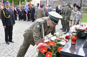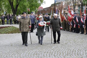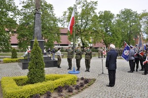 Na Placu Armii Krajowej w asyście pocztów sztandarowych i kompanii honorowej delegacja resortu spraw wewnętrznych w składzie: Zastępca Komendanta Centrum Szkolenia Straży Granicznej w Kętrzynie Pan ppłk SG Dariusz Lutyński, Komendant Powiatowy Policji w Kętrzynie Pan insp. Wiesław Skudelski oraz Zastępca Komendanta Powiatowego PSP w Kętrzynie Pan mł. bryg. Szymon Sapiecha, złożyła symboliczną wiązankę kwiatów pod pomnikiem „W Hołdzie Poległym, Pomordowanym i Zamęczonym Polakom – Obrońcom Ojczyzny 1939-1956”.