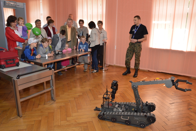 Każdy chętny uczestnik imprezy mógł zostawić odcisk linii papilarnych palców swoich dłoni przy stanowisku Zakładu Kryminalistyki Centrum Szkolenia SG.Wiele radości przyniósł obecnym pokaz tresury psa służbowego zaprezentowany przez funkcjonariusza z Placówki SG w Barcianach.Nie lada atrakcją była możliwość sterowania robotem pirotechnicznym, służącym do szkolenia funkcjonariuszy pracujących na lotniskach przez funkcjonariuszy Zakładu Granicznego Centrum Szkolenia SG.
