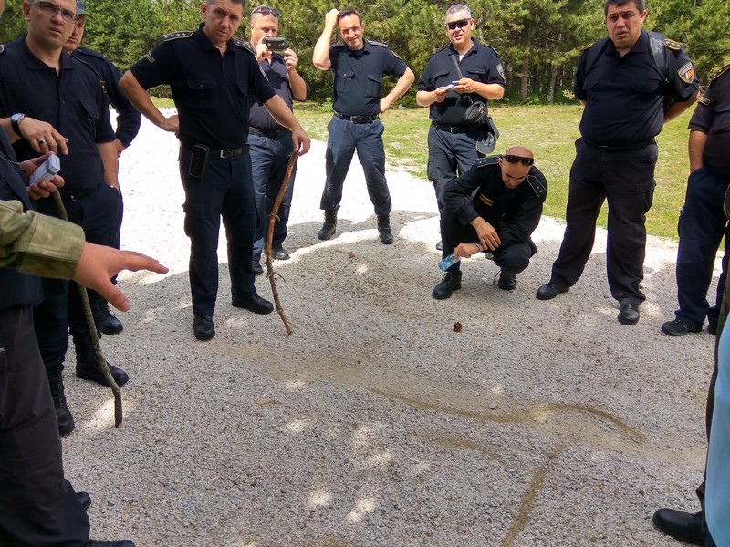Uczestnicy szkolenia zostali zapoznani z zasadami wykrywania, rozpoznawania i zabezpieczania śladów na miejscu zdarzenia w rejonie granicy państwowej, ze sposobami fałszowania i zacierania śladów w trakcie i po przekroczeniu granicy państwowej, ze sposobami przeszukania terenu przyległego do miejsca zdarzenia oraz na trasie poruszania się osób ściganych.