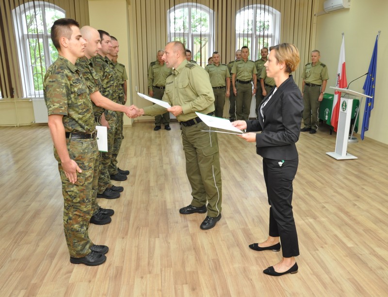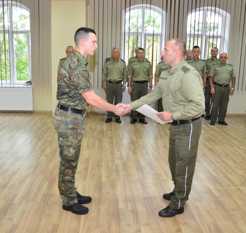 W obecności kadry kierowniczej, Komendant Centrum Szkolenia Straży Granicznej płk SG Grzegorz Skorupski, w towarzystwie Zastępcy Komendanta Centrum Szkolenia Straży Granicznej płk. SG Mirosława Doroszkiewicza, wręczył świadectwa 15 absolwentom, którzy rozpoczęli szkolenie podstawowe w kętrzyńskim ośrodku w dniu 6 listopada 2017 r. a od 9 marca 2018 r. kontynuowali naukę na szkoleniu w zakresie szkoły podoficerskiej.