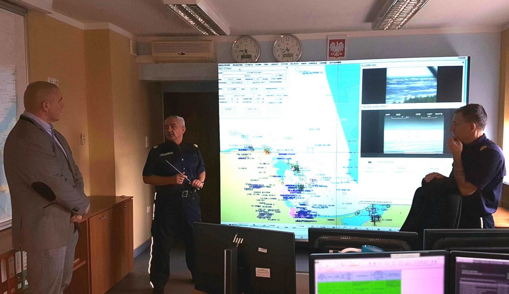 Podczas wizyty płk. SG Adama Pacuka w Komendzie MOSG w Gdańsku zaprezentowano Centralny Ośrodek Nadzoru oraz przybliżono funkcjonowanie Zautomatyzowanego Systemu Radarowego Nadzoru.
