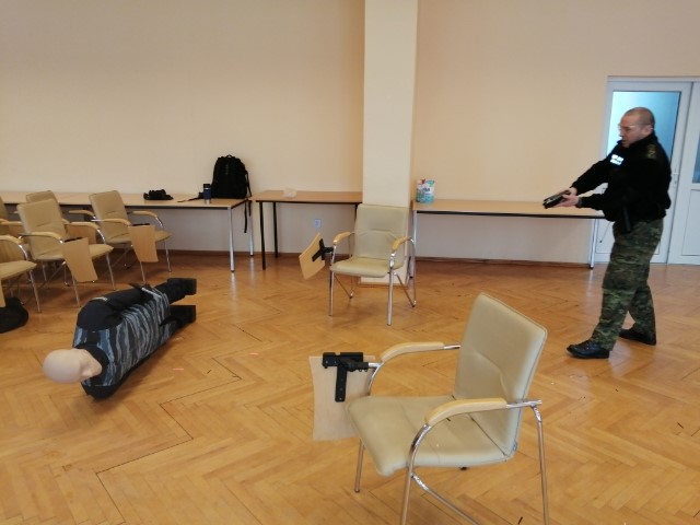 Ponadto funkcjonariusze Morskiego OSG doskonalili umiejętności z zakresu udzielania pierwszej pomocy przedmedycznej po użyciu paralizatora oraz podstawy prawne z użycia lub wykorzystania środka przymusu bezpośredniego w postaci paralizatora. Do realizacji kursu wykorzystano manekina strzeleckiego 3D Phantom. Kurs zakończył się egzaminem teoretycznym i praktycznym, który wszyscy uczestnicy kursu ukończyli z wynikiem pozytywnym.