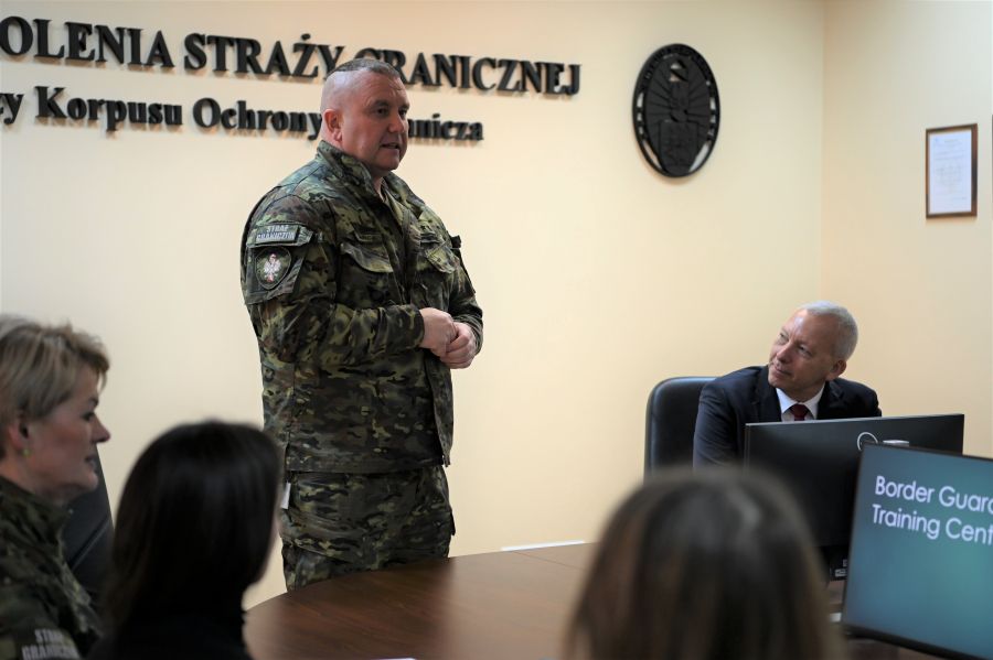 Po powitaniu gościa przez Komendanta Centrum Szkolenia Straży Granicznej płk. SG Adama Pacuka, omówiono profil szkoleń aktualnie realizowanych w tutejszym ośrodku w kontekście sytemu szkolenia Straży Granicznej, a następnie w trakcie ścieżki dydaktycznej zaprezentowano wybrane pozycje bazy dydaktycznej z jednej strony charakteryzujące właściwość szkoleniową tutejszego ośrodka, z drugiej obrazujące ciągłe starania w zakresie zapewnienia oferty szkoleniowej adekwatnej do bieżących potrzeb formacji. W programie ścieżki dydaktycznej znalazły się m.in. Ośrodek Szkoleń Pilotów Bezzałogowych Statków Powietrznych, sala dedykowana prowadzeniu szkoleń w zakresie Systemu Entry/Exit, Bramka ABC czy Polowa baza szkoleń minersko-pirotechnicznych. Szczególną uwagę Pan Michael Linde poświęcił szeroko rozumianej tematyce bezzałogowych statków powietrznych.