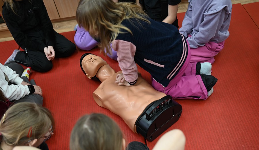 Dzieci w dniu 29 stycznia br. odwiedziły Centrum Szkolenia Straży Granicznej, gdzie czekały na nie ciekawe i pouczające atrakcje. Podczas wizyty poznały specyfikę pracy funkcjonariuszy i nowoczesny sprzęt wykorzystywany w codziennych działaniach. Duże zainteresowanie wzbudziła prezentacja dronów, które wykorzystywane są m.in. do patrolowania terenu. Uczestnicy mogli zobaczyć je z bliska oraz dowiedzieć się jak działają i do czego służą. Ważnym elementem wizyty były też zajęcia z zakresu pierwszej pomocy. Zajęcia miały formę praktyczną, co pozwoliło uczestnikom aktywnie włączyć się w ćwiczenia.