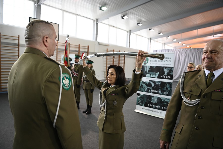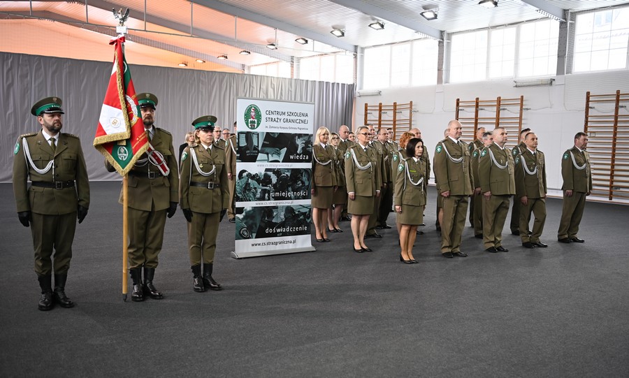 W imieniu Komendanta Głównego Straży Granicznej, Komendant CSSG płk SG Adam Pacuk wręczył funkcjonariuszom: Wioletcie Zglińskiej-Groch, Krzysztofowi Ślaskiemu oraz Jackowi Ciunelowi akty mianowania na stopień pułkownika Straży Granicznej oraz Wojciechowi Groch na stopień majora SG.