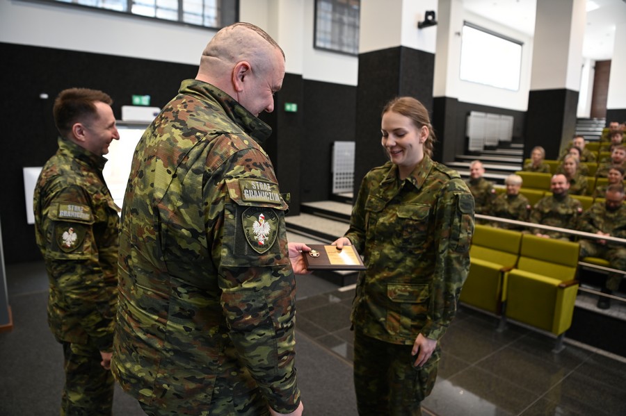 Pierwszą lokatę w szkoleniu zajęła szer. SG Aleksandra Nowakowska z Nadwiślańskiego Oddziału Straży Granicznej z Oddziału Straży Granicznej, którą za uzyskanie najwyższych wyników w szkoleniu, Komendant CSSG uhonorował okolicznościowym grawertonem z absolwentką.